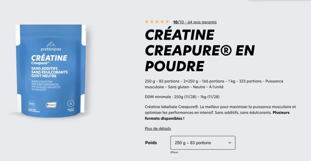 En résumé, choisir une créatine Creapure® proposée par Protealpes par exemple, c’est s’assurer de consommer la créatine monohydrate la plus pure et la mieux contrôlée du marché. Pour un sportif qui prend sa supplémentation au sérieux et qui veut éliminer tout risque lié aux impuretés, c’est le choix le plus rationnel. Le surcoût par rapport à une créatine générique est minime (quelques centimes par jour) au regard de la garantie de pureté et de sécurité sur le long terme.